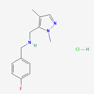 InChI=1S/C13H16FN3.ClH/c1-10-7-16-17(2)13(10)9-15-8-11-3-5-12(14)6-4-11;/h3-7,15H,8-9H2,1-2H3;1H |