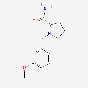 The mechanism of action of 1-[(3-Methoxyphenyl)methyl]pyrrolidine-2-carboxamide involves its interaction with specific molecular targets, such as enzymes or receptors. The pyrrolidine ring can interact with the active site of enzymes, potentially inhibiting their activity. The methoxyphenyl group can enhance binding affinity through hydrophobic interactions and hydrogen bonding. The exact pathways and targets depend on the specific biological context in which the compound is used.
