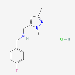 InChI=1S/C13H16FN3.ClH/c1-10-7-13(17(2)16-10)9-15-8-11-3-5-12(14)6-4-11;/h3-7,15H,8-9H2,1-2H3;1H |