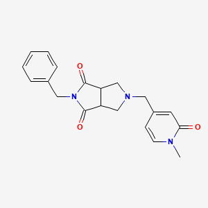 2-Benzyl-5-[(1-methyl-2-oxo-1,2-dihydropyridin-4-yl)methyl]-octahydropyrrolo[3,4-c]pyrrole-1,3-dione is a complex organic compound that belongs to the class of heterocyclic compounds. These compounds are characterized by the presence of a ring structure containing at least one atom other than carbon. The compound’s structure includes a pyrrole ring fused with a pyrrolidine ring, which is further substituted with a benzyl group and a dihydropyridinylmethyl group. This unique structure imparts specific chemical and biological properties to the compound, making it of interest in various fields of scientific research.