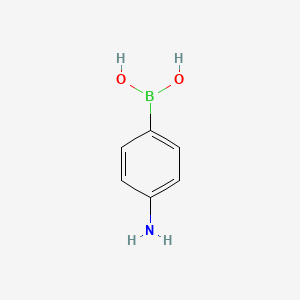 This compound hydrochloride (4-APBA HCl) is an organic compound featuring both an amino group and a boronic acid moiety. Its hydrochloride form generally enhances its stability and solubility in aqueous solutions.[1] This compound is a crucial building block in organic synthesis, particularly in Suzuki-Miyaura cross-coupling reactions for the formation of carbon-carbon bonds.[1] In the realm of drug development and biochemical research, it is recognized for its ability to form reversible covalent bonds with diols, making it valuable for the development of sensors, targeted drug delivery systems, and as an inhibitor of certain enzymes like serine proteases.[1][2]