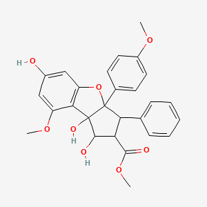 Methyl 1,6,8b-trihydroxy-8-methoxy-3a-(4-methoxyphenyl)-3-phenyl-2,3-dihydro-1H-cyclopentabbenzofuran-2-carboxylate is a complex organic compound with a unique structure