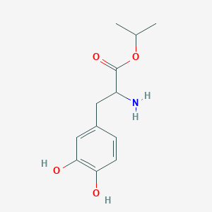 This compound is an ester derivative of L-DOPA, characterized by the substitution of the carboxylic acid group with an isopropyl ester moiety. Its IUPAC name, This compound , reflects this structural modification. The molecular formula is C₁₂H₁₇NO₄ , with a molecular weight of 239.27 g/mol . The compound retains the catechol and amino functional groups of L-DOPA, which are critical for its biological activity, while the ester group enhances its solubility in nonpolar environments.