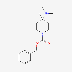 The mechanism of action of Benzyl 4-(dimethylamino)-4-methylpiperidine-1-carboxylate involves its interaction with specific molecular targets, such as receptors or enzymes. The dimethylamino group can participate in hydrogen bonding and electrostatic interactions, while the benzyl group can enhance lipophilicity, facilitating membrane penetration. The compound may modulate the activity of neurotransmitter receptors or inhibit specific enzymes, leading to its observed biological effects.