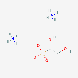 The mechanism of action of diazanium;1-phosphonatopropane-1,2-diol involves its ability to undergo various chemical transformations, such as oxidation and substitution. These reactions are facilitated by the presence of the diazanium and phosphonatopropane-1,2-diol groups, which interact with molecular targets and pathways in biological systems . The compound’s reactivity and versatility make it a valuable tool in synthetic chemistry and biomedical research.
