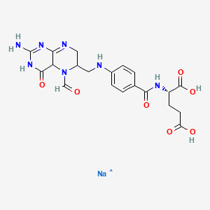 L-Glutamic acid, N-[4-[[(2-amino-5-formyl-3,4,5,6,7,8-hexahydro-4-oxo-6-pteridinyl)methyl]amino]benzoyl]-, sodium salt (1:1) is a complex organic compound that plays a significant role in various biochemical processes. This compound is a derivative of folic acid and is known for its involvement in cellular growth and DNA synthesis.
