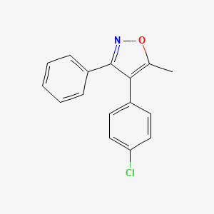 The mechanism of action of 4-(4-Chlorophenyl)-5-methyl-3-phenylisoxazole involves its interaction with specific molecular targets and pathways. The compound can bind to enzymes or receptors, modulating their activity and leading to various biological effects. For example, it may inhibit the activity of certain enzymes involved in disease pathways, thereby exerting therapeutic effects . The exact molecular targets and pathways can vary depending on the specific application and context.
