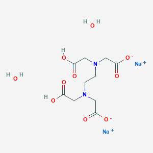 Disodium;2-[2-[bis(carboxymethyl)amino]ethyl-(carboxylatomethyl)amino]acetate; dihydrate, commonly known as disodium EDTA (Ethylenediaminetetraacetic acid disodium salt), is a versatile chelating agent with significant biological activity. This compound is widely used in various fields, including biochemistry, medicine, and environmental science, due to its ability to bind metal ions and form stable complexes.