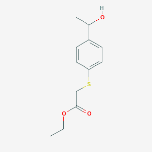 Ethyl 2-{[4-(1-hydroxyethyl)phenyl]sulfanyl}acetate is an organic compound with the molecular formula C₁₂H₁₆O₃S and a molecular weight of 240.32 g/mol . This compound is characterized by the presence of an ethyl ester group, a phenyl ring substituted with a hydroxyethyl group, and a sulfanyl group. It is primarily used in research and industrial applications due to its unique chemical properties.