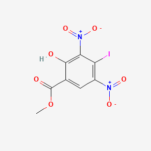 Methyl 2-hydroxy-4-iodo-3,5-dinitrobenzoate is an organic compound with the molecular formula C8H5IN2O7. It is a derivative of benzoic acid, featuring both nitro and iodine substituents, which contribute to its unique chemical properties. This compound is often used in various scientific research applications due to its reactivity and functional groups.