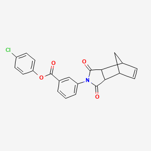 4-chlorophenyl 3-(1,3-dioxo-1,3,3a,4,7,7a-hexahydro-2H-4,7-methanoisoindol-2-yl)benzoate is a complex organic compound with a unique structure that combines a chlorophenyl group with a benzoate ester linked to a hexahydro-2H-4,7-methanoisoindole moiety