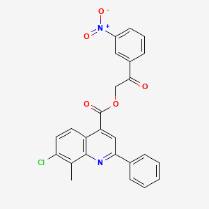2-(3-Nitrophenyl)-2-oxoethyl 7-chloro-8-methyl-2-phenylquinoline-4-carboxylate is a complex organic compound that belongs to the quinoline family Quinoline derivatives are known for their diverse biological activities and are widely used in medicinal chemistry