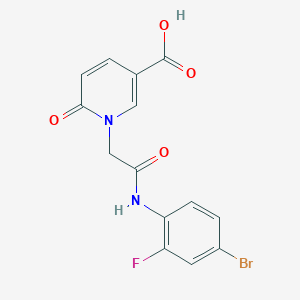 1-{[(4-BROMO-2-FLUOROPHENYL)CARBAMOYL]METHYL}-6-OXOPYRIDINE-3-CARBOXYLIC ACID is a complex organic compound that has garnered interest in various scientific fields due to its unique chemical structure and potential applications. This compound features a pyridine ring substituted with a carboxylic acid group, a bromine and fluorine-substituted phenyl group, and a carbamoyl methyl group.