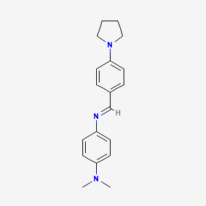 The synthesis of N,N-dimethyl-N’-{(E)-[4-(pyrrolidin-1-yl)phenyl]methylidene}benzene-1,4-diamine typically involves the condensation of N,N-dimethylbenzene-1,4-diamine with 4-(pyrrolidin-1-yl)benzaldehyde under basic conditions. The reaction is usually carried out in a solvent such as ethanol or methanol, with a base like sodium hydroxide or potassium carbonate to facilitate the condensation reaction.