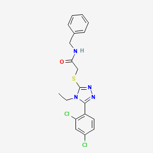 N-benzyl-2-{[5-(2,4-dichlorophenyl)-4-ethyl-4H-1,2,4-triazol-3-yl]sulfanyl}acetamide is a complex organic compound with a molecular formula of C24H20Cl2N4OS It is characterized by the presence of a triazole ring, a dichlorophenyl group, and a sulfanylacetamide moiety