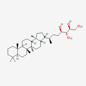 This compound is a C35 extended hopanoid characterized by a rigid pentacyclic hopane (B1207426) core and a C5 polyhydroxylated side chain. The core structure is derived from squalene, while the side chain is typically attached at the C-22 position.[3]