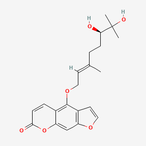 This compound (DHB) is a furanocoumarin, a class of organic chemical compounds produced by a variety of plants. Its chemical structure consists of a psoralen core substituted with a dihydroxylated geranyl chain.