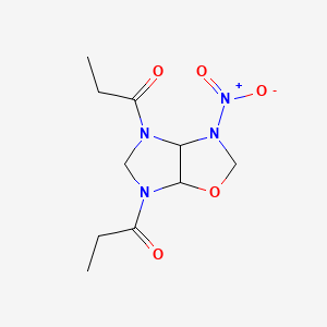 The synthesis of 1,1’-(3-Nitrodihydro-2H-imidazo[4,5-d][1,3]oxazole-4,6(3H,5H)-diyl)di(propan-1-one) typically involves multi-step reactions starting from readily available precursors. One common synthetic route involves the cyclization of appropriate precursors under specific conditions to form the imidazole ring, followed by nitration and subsequent functionalization to introduce the desired substituents.