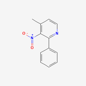 The mechanism of action of 4-Methyl-3-nitro-2-phenylpyridine involves its interaction with specific molecular targets. The nitro group can undergo reduction to form reactive intermediates that interact with cellular components, leading to various biological effects. The compound’s ability to undergo nucleophilic substitution also allows it to modify biological molecules, potentially disrupting their normal function .