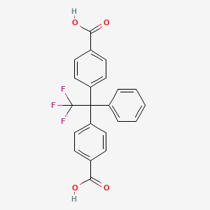 The mechanism by which 4,4’-(2,2,2-Trifluoro-1-phenylethane-1,1-diyl)dibenzoic acid exerts its effects involves interactions with molecular targets and pathways. The trifluoromethyl group enhances the compound’s lipophilicity, allowing it to interact with hydrophobic regions of proteins and enzymes. This interaction can modulate enzyme activity, protein folding, and other biochemical processes.