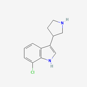 The mechanism of action of 7-Chloro-3-(pyrrolidin-3-yl)-1H-indole involves its interaction with specific molecular targets and pathways. The compound may bind to certain receptors or enzymes, modulating their activity and leading to various biological effects. For example, it may inhibit the activity of certain enzymes involved in disease pathways, thereby exerting its therapeutic effects.
