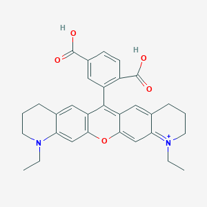 2-(6,20-diethyl-2-oxa-20-aza-6-azoniapentacyclo[12.8.0.03,12.05,10.016,21]docosa-1(14),3,5,10,12,15,21-heptaen-13-yl)terephthalic acid is a fluorescent label belonging to the class of rhodamine dyes. It is known for its strong absorption, high fluorescence quantum yield, and high thermal and photo-stability. These properties make it highly suitable for single-molecule detection applications and high-resolution microscopy such as photoactivated localization microscopy, direct stochastic optical reconstruction microscopy, and stimulated emission depletion microscopy .