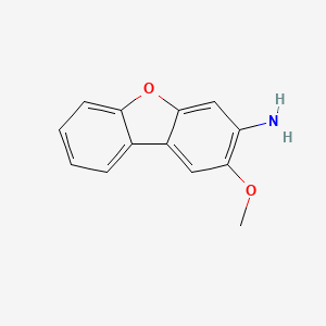 This compound, also known by its IUPAC name 2-methoxydibenzofuran-3-amine, is a crystalline solid at room temperature. The core of the molecule is a dibenzofuran system, which consists of two benzene rings fused to a central furan ring. This tricyclic structure imparts significant thermal stability and a planar geometry. The molecule is further functionalized with a primary amine and a methoxy group on one of the benzene rings, which are critical to its chemical reactivity and biological interactions.