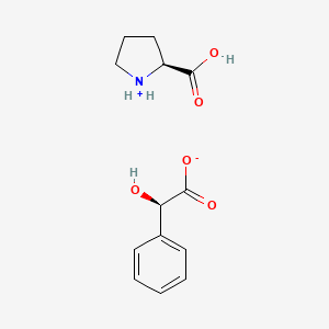 The synthesis of L-Prolinium ®-alpha-hydroxybenzeneacetate typically involves the reaction of L-proline with ®-alpha-hydroxybenzeneacetic acid. One common method is to dissolve both reactants in a suitable solvent, such as water or ethanol, and then allow the reaction to proceed at room temperature. The reaction can be catalyzed by acids or bases, depending on the desired reaction conditions. The product is then isolated by filtration and purified through recrystallization.
