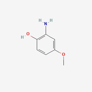 2-Amino-4-methoxyphenol (CAS No: 20734-76-3) is a substituted aminophenol derivative that serves as a versatile intermediate in various chemical syntheses.[1] Also known by synonyms such as 4-Methoxy-2-aminophenol and 2-Hydroxy-5-methoxyaniline, this compound is structurally characterized by a benzene ring substituted with hydroxyl, amino, and methoxy groups.[2] Its unique arrangement of functional groups makes it a valuable precursor in the production of dyes, pharmaceuticals, and other specialty chemicals.[1] Notably, it is a key intermediate for creating analgesics and anti-inflammatory drugs and is used in the synthesis of potential ligands for estrogen receptors.[1][3] Furthermore, this compound has been identified as a volatile constituent in the aroma concentrate of Tieguanyin oolong teas.[3] This guide provides an in-depth overview of its physical and chemical properties, experimental protocols for its synthesis and analysis, and a summary of its known and potential biological activities.