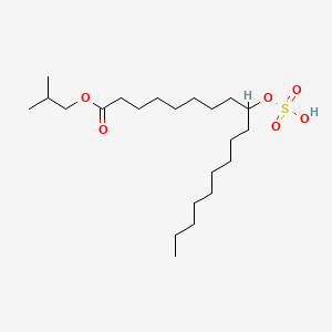 Synthetic Routes and Reaction Conditions: The synthesis of isobutyl 9-(sulfooxy)stearate typically involves the esterification of stearic acid with isobutyl alcohol in the presence of a catalyst, such as sulfuric acid. The reaction is carried out under reflux conditions to ensure complete esterification. The sulfooxy group is introduced through a sulfonation reaction, where the esterified product is treated with a sulfonating agent like chlorosulfonic acid or sulfur trioxide.