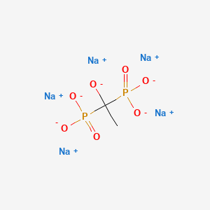 Phosphonic acid, (1-hydroxyethylidene)bis-, pentasodium salt is a chemical compound known for its strong chelating properties. It forms stable complexes with metal ions in aqueous solutions, making it widely utilized as a chelating and sequestering agent in various applications, including detergents and water treatment .