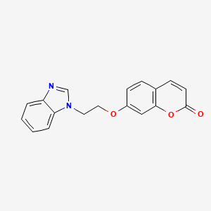 2H-1-Benzopyran-2-one, 7-(2-(1H-benzimidazol-1-yl)ethoxy)- is a complex organic compound that belongs to the class of benzopyran derivatives. This compound is characterized by the presence of a benzopyran ring system fused with a benzimidazole moiety through an ethoxy linkage. Benzopyran derivatives are known for their diverse biological activities and are widely studied in medicinal chemistry.