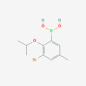 3-Bromo-2-isopropoxy-5-methylphenylboronic acid is a specialized arylboronic acid that serves as a critical intermediate in modern synthetic chemistry. Its strategic substitution pattern—featuring a reactive boronic acid group, a versatile bromine handle for cross-coupling, and a sterically influential ortho-isopropoxy group—makes it a valuable reagent for constructing complex biaryl structures. These motifs are central to the development of novel active pharmaceutical ingredients (APIs) and advanced materials.[1][2]