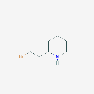 2-(2-Bromoethyl)piperidine is a bifunctional molecule, possessing both a nucleophilic secondary amine within the piperidine ring and a reactive primary alkyl bromide on the side chain. This dual reactivity is central to its synthetic utility. Specifically, it belongs to the subclass of 2-(ω-haloalkyl)piperidines, which are noted for their role as precursors in the construction of bicyclic and polycyclic nitrogen-containing heterocycles. researchgate.net The presence of the bromoethyl group at the 2-position makes it a key intermediate for synthesizing fused ring systems like indolizidines. researchgate.net While other halogenated piperidines are used to create a wide array of substituted piperidines, this compound is particularly recognized for its application in tandem reactions where both the amine and the alkyl halide functionalities are sequentially involved.