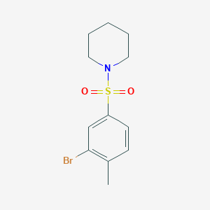 The synthesis of 1-(3-Bromo-4-methylphenylsulfonyl)piperidine typically involves the reaction of 3-bromo-4-methylbenzenesulfonyl chloride with piperidine . The reaction is carried out under controlled conditions, often in the presence of a base such as triethylamine, to facilitate the formation of the desired product. The reaction mixture is usually stirred at room temperature for several hours, followed by purification steps such as recrystallization or chromatography to obtain the pure compound.