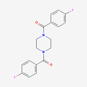 [4-(4-Iodobenzoyl)piperazin-1-yl]-(4-iodophenyl)methanone is a chemical compound with the molecular formula C18H16I2N2O It is characterized by the presence of two iodine atoms attached to benzoyl and phenyl groups, linked through a piperazine ring