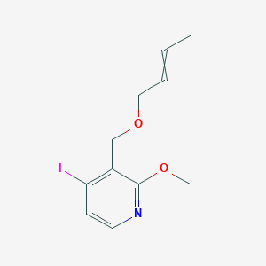 3-((But-2-en-1-yloxy)methyl)-4-iodo-2-methoxypyridine is an organic compound that belongs to the class of pyridines. This compound is characterized by the presence of a pyridine ring substituted with an iodo group at the fourth position, a methoxy group at the second position, and a but-2-en-1-yloxy methyl group at the third position. The unique structure of this compound makes it an interesting subject for various chemical and biological studies.