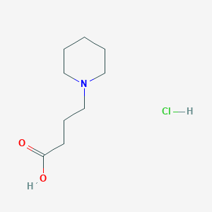 4-(Piperidin-1-yl)butanoic acid hydrochloride: is a chemical compound with the molecular formula C9H18ClNO2 and a molecular weight of 207.7 g/mol . It is a derivative of piperidine and butanoic acid, and it is commonly used in various chemical and biological research applications. This compound is known for its role in the synthesis of inhibitors of nicotinamide adenine dinucleotide (NAD) biosynthesis .