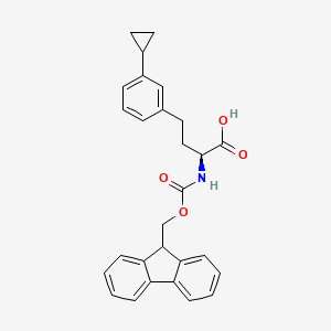 (S)-2-((((9H-Fluoren-9-yl)methoxy)carbonyl)amino)-4-(3-cyclopropylphenyl)butanoic acid is unique due to its combination of the Fmoc protecting group, an amino acid backbone, and a cyclopropylphenyl moiety. This combination allows for versatile applications in peptide synthesis and other chemical reactions.
