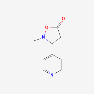 The synthesis of 2-Methyl-3-(pyridin-4-yl)isoxazolidin-5-one typically involves the cyclization of appropriate precursors. One common method involves the reaction of 4-pyridinecarboxaldehyde with hydroxylamine to form an oxime, followed by cyclization with an appropriate alkylating agent to yield the isoxazolidinone ring. The reaction conditions often include the use of a base such as sodium hydroxide or potassium carbonate and solvents like ethanol or methanol.