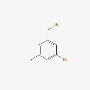The mechanism of action of 1-Bromo-3-(bromomethyl)-5-methylbenzene involves its reactivity towards nucleophiles and electrophiles. The bromine atoms act as leaving groups, facilitating substitution reactions. The compound can also undergo radical reactions, where the bromine atoms are replaced by other radicals, leading to the formation of new compounds. The molecular targets and pathways involved depend on the specific reactions and conditions used.