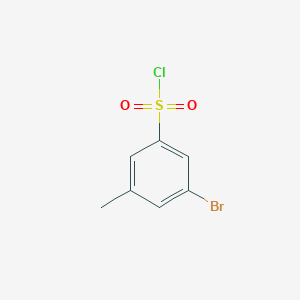 This compound is an organic compound featuring a benzene ring substituted with a bromo, a methyl, and a sulfonyl chloride group at positions 3, 5, and 1, respectively. The presence of the highly reactive sulfonyl chloride moiety makes it a valuable precursor for the synthesis of sulfonamides, sulfonates, and other sulfur-containing derivatives.