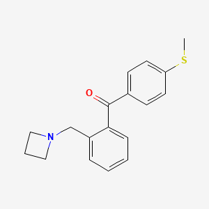 2-Azetidinomethyl-4'-thiomethylbenzophenone is a benzophenone derivative featuring an azetidine (four-membered nitrogen-containing ring) moiety at the 2-position and a thiomethyl (-SCH₃) group at the 4'-position of the aromatic rings.