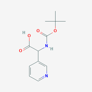 This compound, also known as N-Boc-3-pyridylglycine, is a non-proteinogenic amino acid derivative. The presence of the pyridine ring makes it an important structural motif in the design of novel therapeutic agents. The tert-butoxycarbonyl (Boc) protecting group on the alpha-amino function allows for its selective deprotection during complex synthetic sequences, making it a versatile intermediate in the construction of peptidomimetics and other complex molecules.