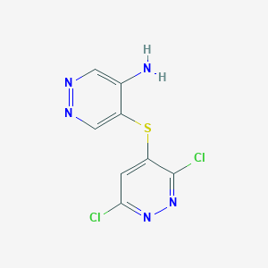 The mechanism of action of 5-((3,6-Dichloropyridazin-4-yl)thio)pyridazin-4-amine involves its interaction with specific molecular targets. The compound can bind to enzymes or receptors, modulating their activity. The exact pathways and targets depend on the specific application and are subjects of ongoing research.