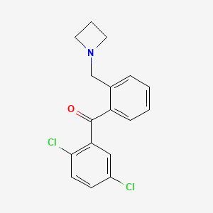 The mechanism of action of 2’-Azetidinomethyl-2,5-dichlorobenzophenone involves its interaction with specific molecular targets, such as enzymes or receptors. The azetidine ring and benzophenone core contribute to its binding affinity and specificity. The compound may inhibit enzyme activity or modulate receptor signaling pathways, leading to its observed biological effects.
