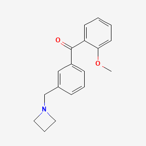 The mechanism of action of 3’-Azetidinomethyl-2-methoxybenzophenone involves its interaction with specific molecular targets. The azetidine ring can interact with enzymes or receptors, leading to modulation of their activity. The methoxy group and benzophenone core can also contribute to the compound’s overall biological activity by affecting its binding affinity and selectivity.