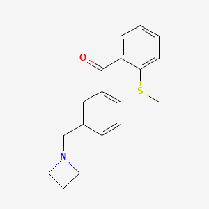 The mechanism of action of 3’-Azetidinomethyl-2-thiomethylbenzophenone involves its interaction with specific molecular targets and pathways. The azetidine ring and thiomethyl group play crucial roles in its biological activity. The compound may interact with enzymes, receptors, or other biomolecules, leading to various biochemical effects. Detailed studies are required to elucidate the exact molecular targets and pathways involved.