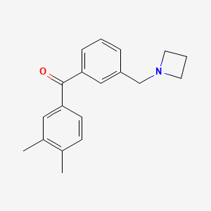 3'-Azetidinomethyl-3,4-dimethylbenzophenone is a compound that has garnered attention for its potential biological activities, particularly in the fields of antimicrobial and anticancer research. Its unique structural features, including an azetidine ring and a benzophenone core, contribute to its diverse interactions with biological systems. This article aims to provide a comprehensive overview of the biological activity associated with this compound, supported by data tables and relevant case studies.