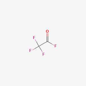 Trifluoroacetyl fluoride (B91410) (TFAF), with the chemical formula C₂F₄O, is a highly reactive organofluorine compound.[1] It is a colorless, non-flammable, and toxic gas at standard conditions.[2][3][4] The presence of a trifluoromethyl group attached to the carbonyl carbon makes it a potent electrophile and a valuable reagent in organic synthesis.[5] This guide provides a comprehensive overview of the chemical properties, reactivity, synthesis, and applications of trifluoroacetyl fluoride, with a focus on its utility for professionals in research and drug development. The incorporation of fluorine atoms into organic molecules can significantly enhance their pharmacological properties, such as bioavailability and metabolic stability, making TFAF a crucial building block in the synthesis of pharmaceuticals and agrochemicals.[1][5]